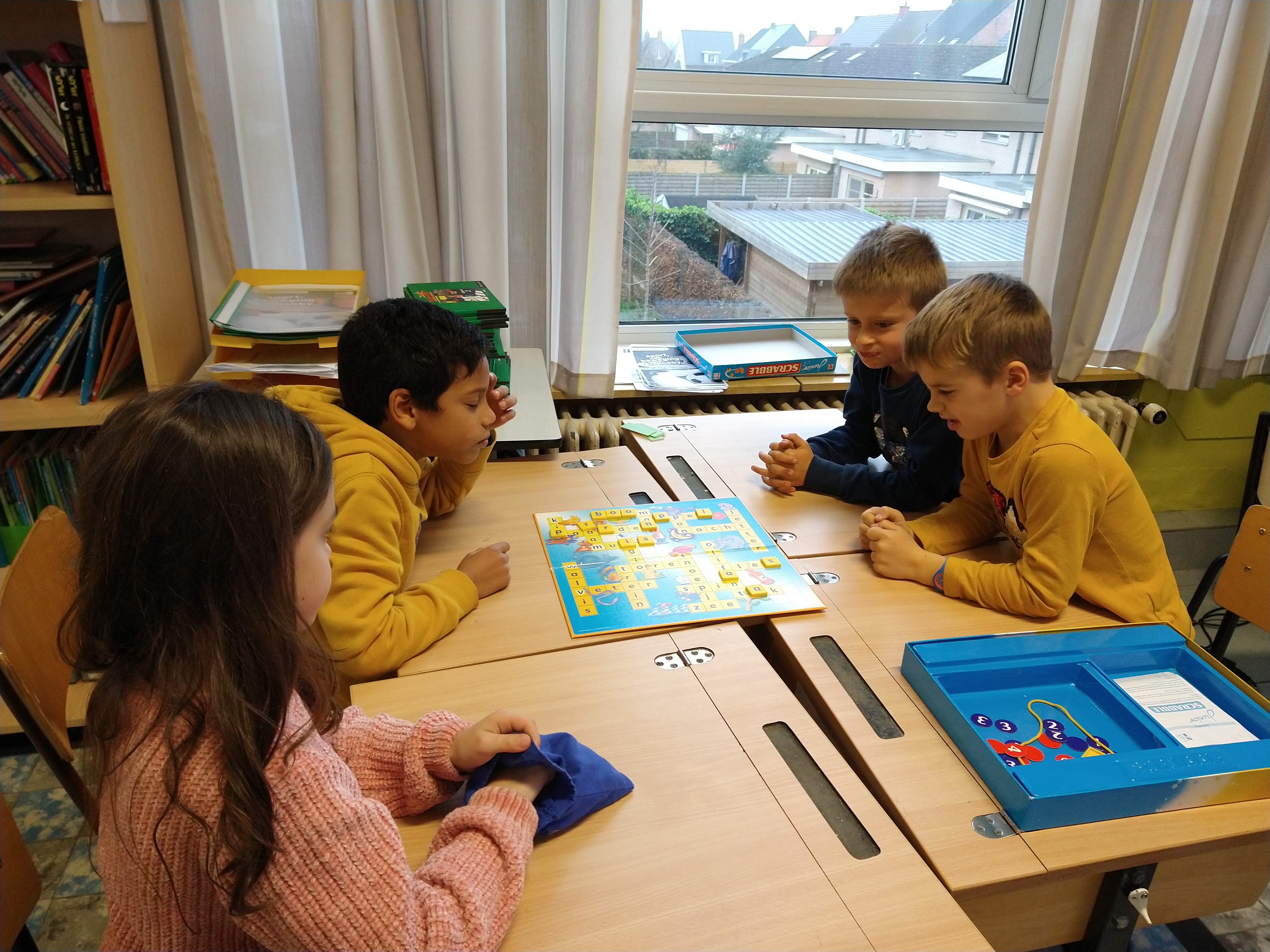 Tijdens het hoekenwerk werden we in 4 groepjes verdeeld: taalhoek (junior scrabble, spellingbundel kijker 3), rekenhoek (bingo waarbij we de getallen tot 100 juist leren lezen), werohoek (Sinterklaaskadospel en op stap met de Sint) en muzische hoek (Zwarte Piet trekpopje knutselen).